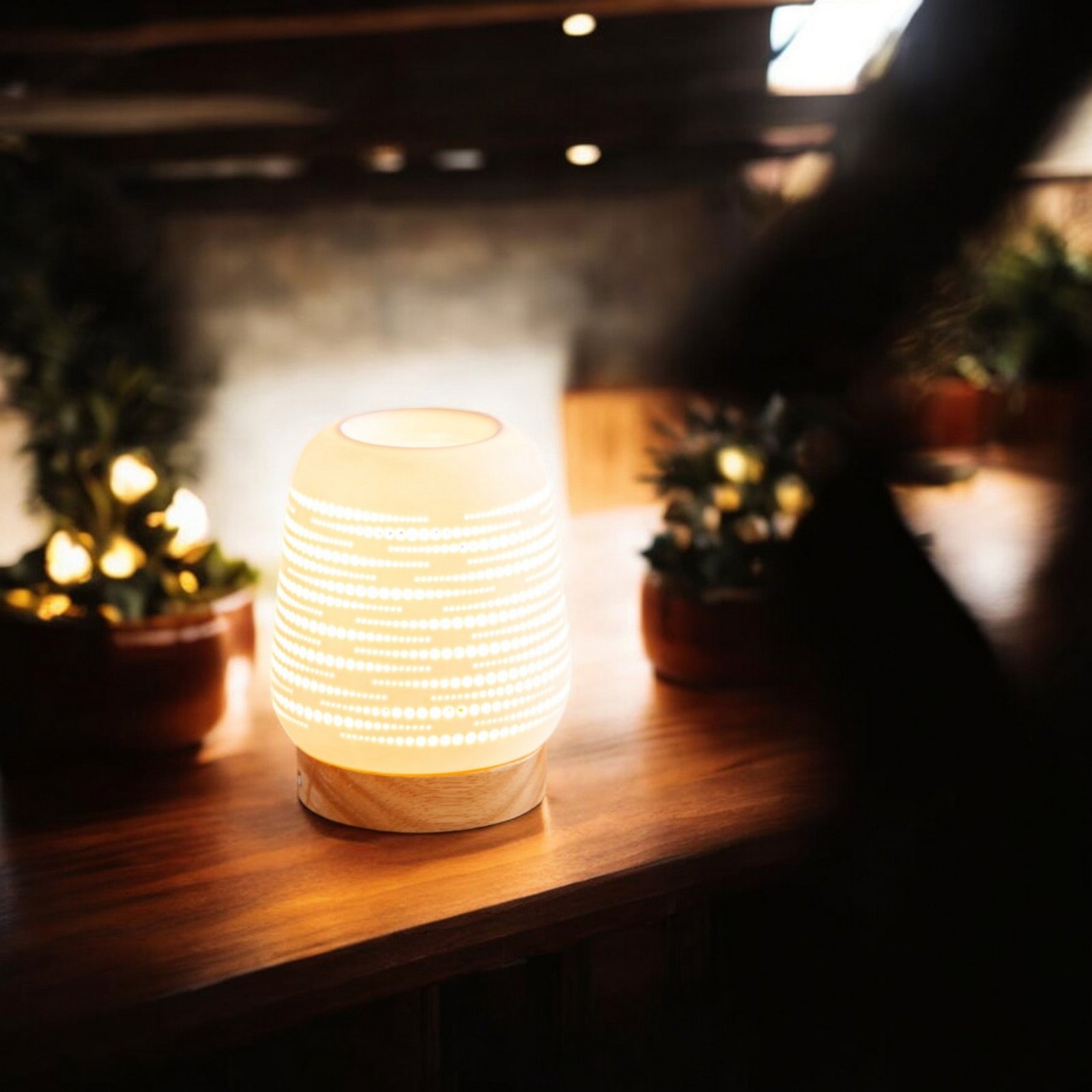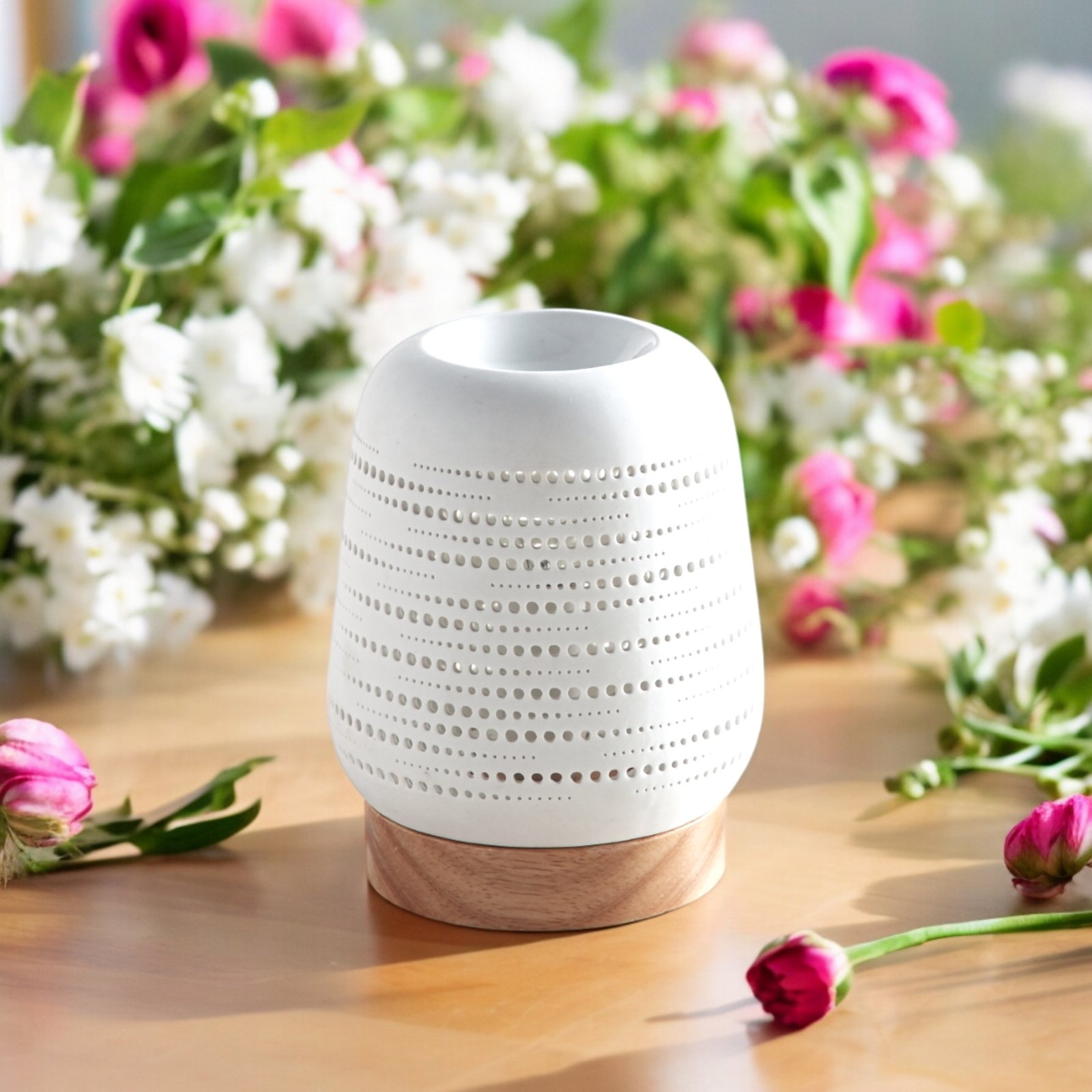 Transformez votre intérieur en un havre de paix avec notre diffuseur de parfum à chaleur douce, alliant un design raffiné en céramique ajourée à une base en bois élégante. Ce diffuseur est conçu pour offrir une diffusion subtile et uniforme des arômes, tout en ajoutant une touche sophistiquée à votre décor.
